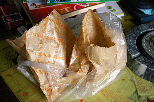 因為家在附近,很少在這裡吃都是打包回家慢慢爽。每次當燒餅一端出來,幾乎很快的時間一盤燒餅就會被一掃而空,所以手腳要俐落點才好。用來裝燒餅的袋子似乎跟小時候一樣,我也依舊習慣的把甜的放在一袋,鹹的夾到另一袋。