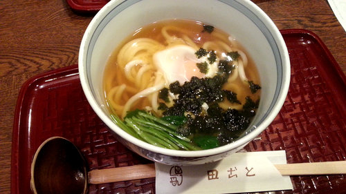 走一走不知不覺地就餓了,隨便找了一家麵店進去,聽說在日本吃麵要簌簌簌簌很大聲來表示很好吃,所以當然就給他大聲的簌簌起來