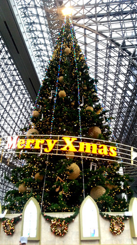 由於是耶誕節將近的關係,這裡樹立了一個巨大的耶誕樹,還有播放著耶誕歌曲,很有節日的氣氛。