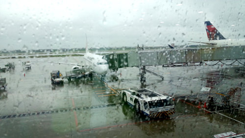台北已經下了幾天的雨,一大早起床還是陰雨綿綿,搭上預約的機場接送後,在半睡半醒的情況下抵達桃園機場。由於早到了不少時間,日本航空的櫃台還沒開,便在位置上休息了一下,不一會一大堆旅行團突然出現,機場頓時成了熱鬧的菜市場。